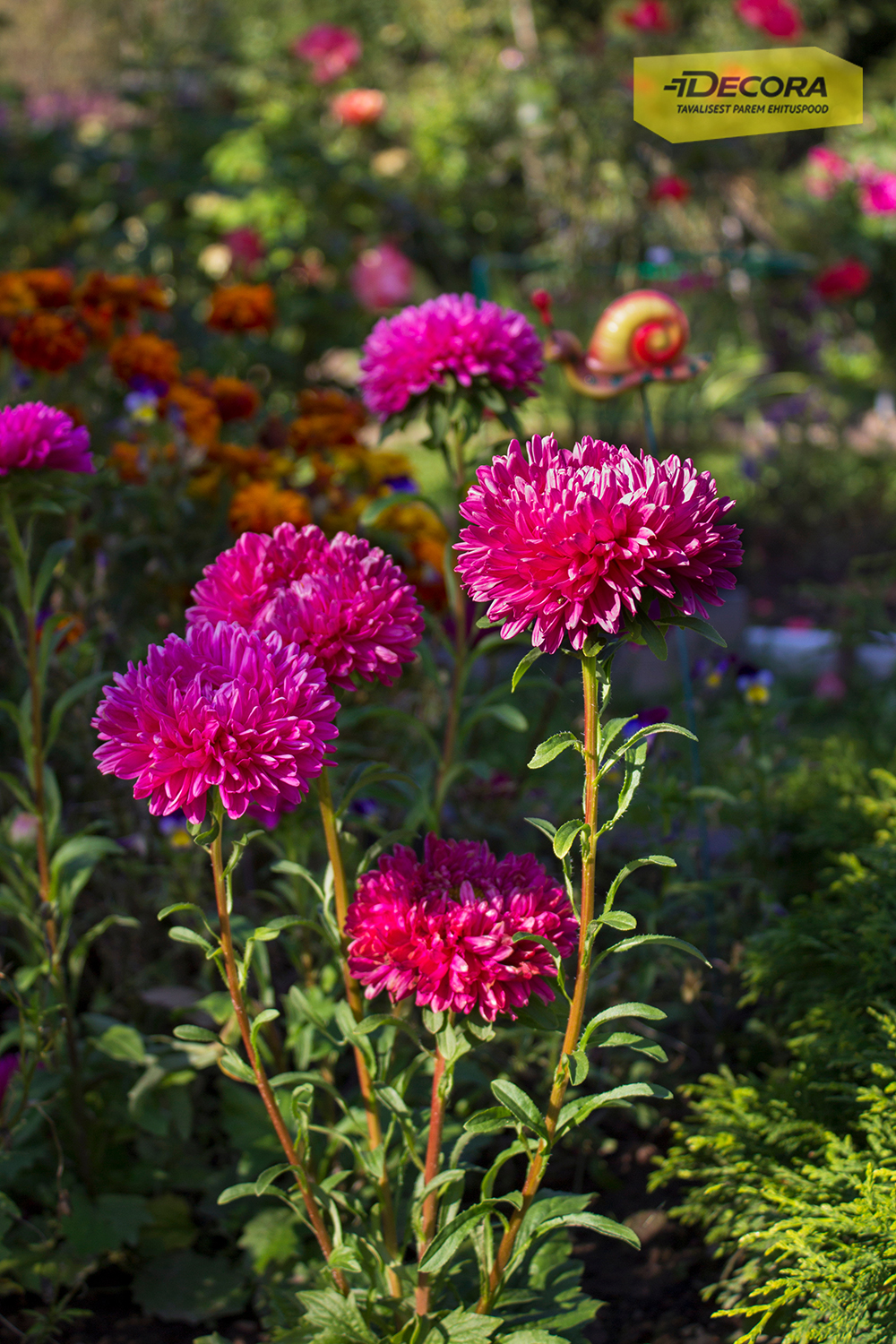Soovid oma aeda ilusaid sügisõisi siis Decora Reklaamiosakonna üks lemmikumaid on astrid. Madalakasvulised astrid sobivad hästi kiviktaimlasse või püsilillepeenrasse ääristaimeks. Lemmiknaabrid on tal näiteks karukellad, raudrohu sordid, tähtputked, kurerehad, makedoonia äiatar. Kõrgekasvulised astrid vajavad esilepääsemiseks avarat ruumi, naabritena kuldvits, kobarpea, ogaputk, lursslill, aed-leeklill. Kõik astrid on suurepärased lõikelilled. Neist saab tõeliselt uhkeid kimpe ja seadeid. Ka varjasi öökülmi taluvad nad üsna hästi. Kasvuks sobib viljakas, parasniiske muld ning päikesepaisteline kasvukoht. Õitsevad rikkalikult ja pikalt ning meelitavad aeda liblikaid ja mesilasi.