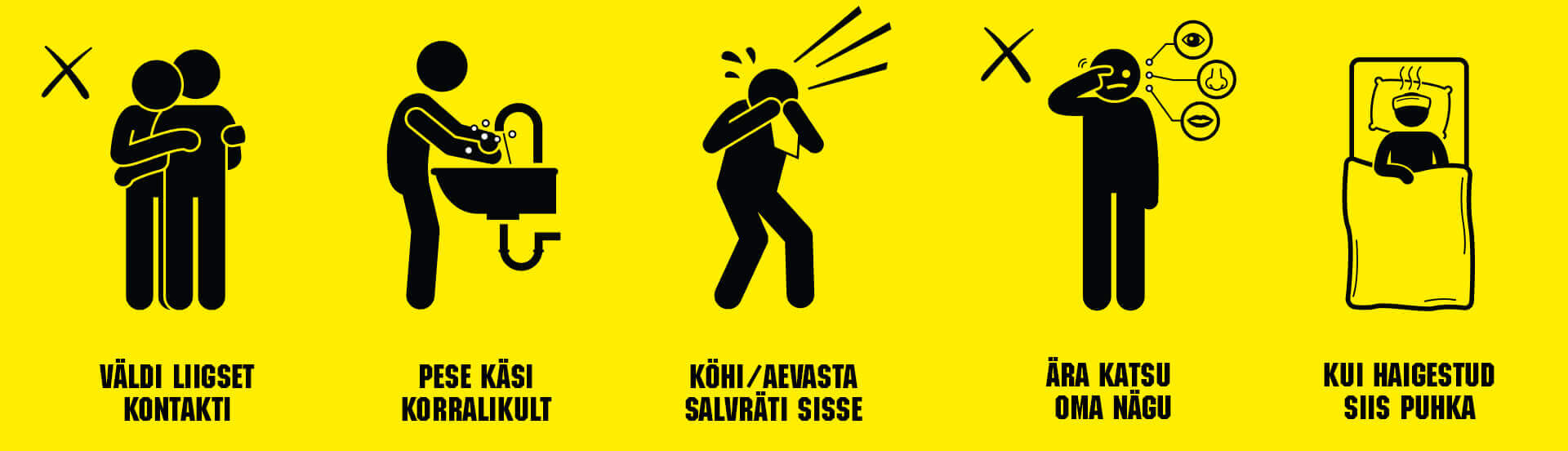 - Kui võimalik köhi ja aevasta salvrätikusse. Peale kasutamist viska salvrätt kohe minema. Kui pole võimalik köhi/aevasta varrukasse. Sellisel juhul pese oma riietus esimesel võimalusel, sest riietes võib viirus edasi elada kuni nädala.