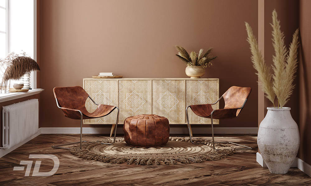 Me kõik soovime hinges olla veidi metsikumad. Selle pärast võibki leida 2021 sisustusstiilides modernse maaläheduse jooni. Selle stiili omapära seisneb nö „tagasi juurte juurde“ lähenemisel. Nüüd aga võid sisustada suurejooneliselt! Ühilda omavahel pruun ja oliiviroheline elegantseks sümbioosiks. Hoia alles luksuslikud kunstkarusnahksed vaibad, sest need sobivad koju just praegu. Mõtle mattmustadele ja messingust viimistlusele, millel on kaasaegne õige pisike läige.