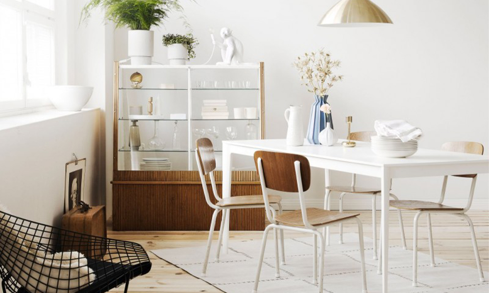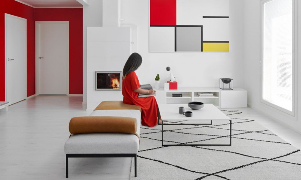 Graafilised mustrid annavad ruumile uue dimensiooni ja see on väga nutikas viis hoida ruumi huvitavana. Lisa valges interjööris aktsendiks õhukeste mustade jalgadega mööblit, säravatest toonides vaipu ja maale.